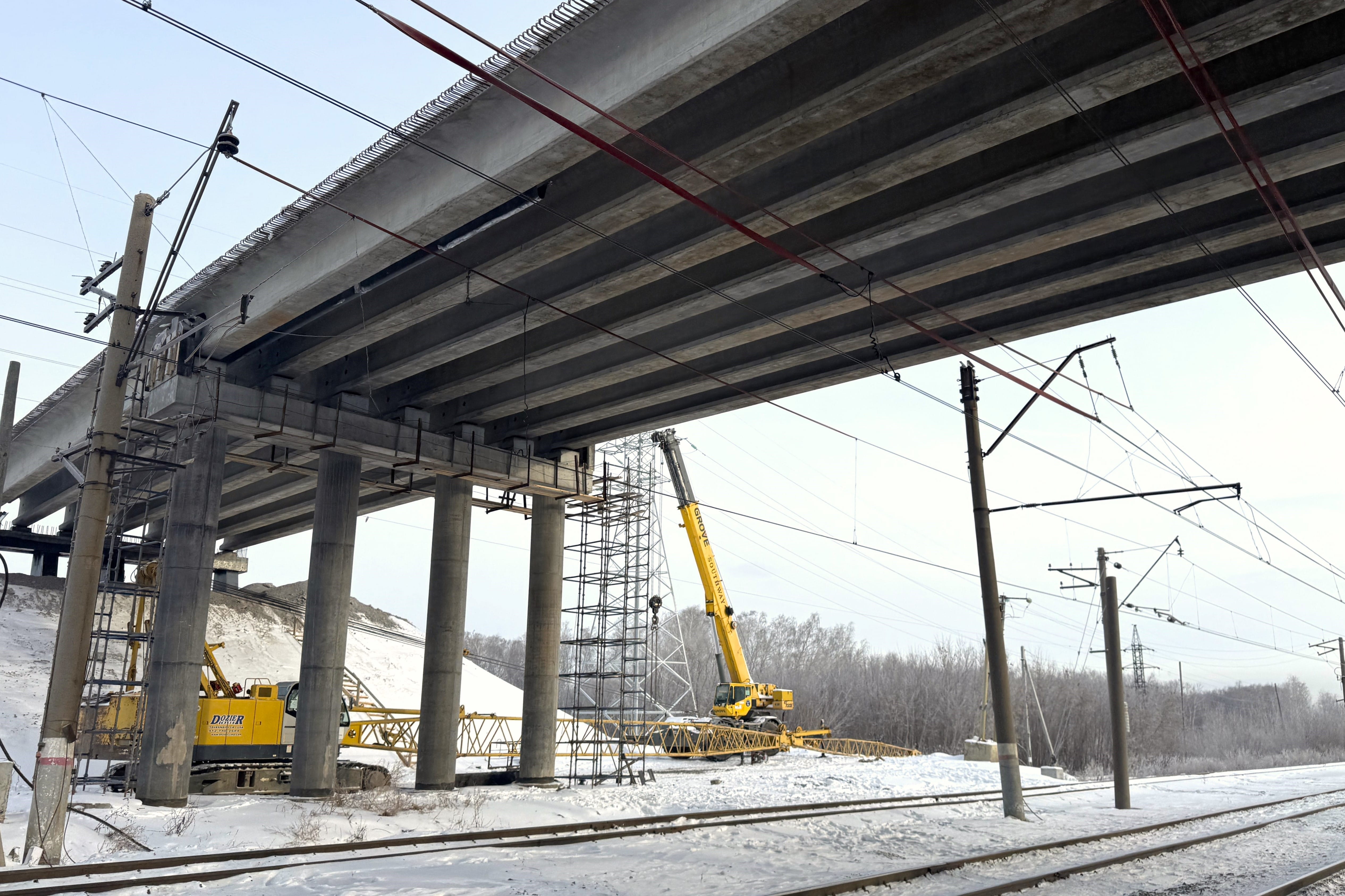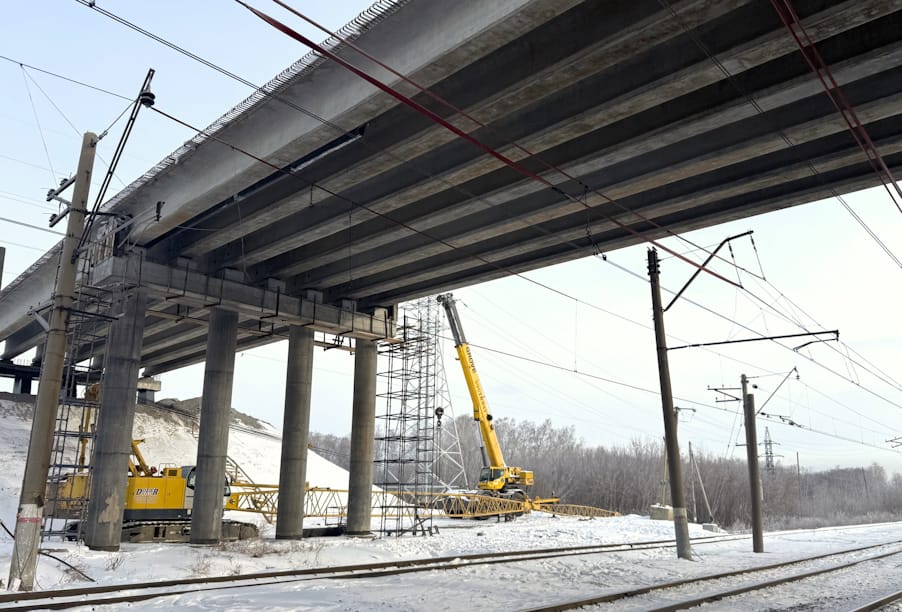 Работы стартовали в 2024 году по национальному проекту «Безопасные качественные дороги». За это время специалисты перенесли инженерные сети, сделали насыпь для подъезда, смонтировали основные балки пролетных строений искусственного сооружения.